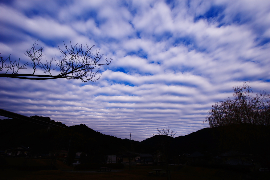 とにかく不思議でした。 雲が空一面に縞模様になっていました。